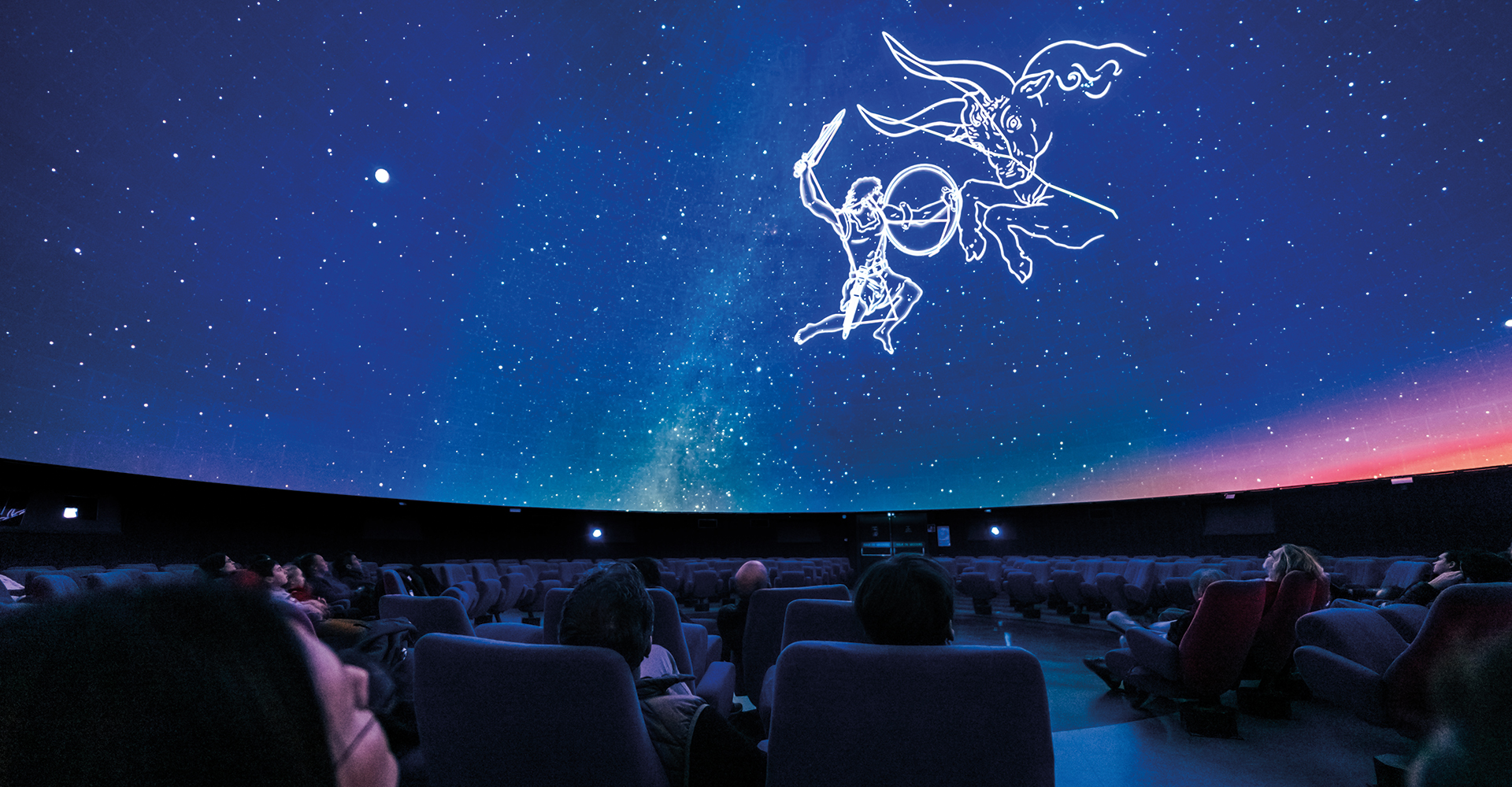 Installation permettant de projeter sur un dôme des images et vidéos représentant le mouvement des planètes, les constellations et autres phénomènes astronomiques.
